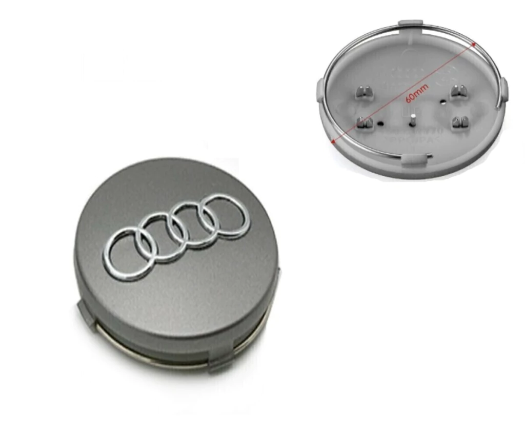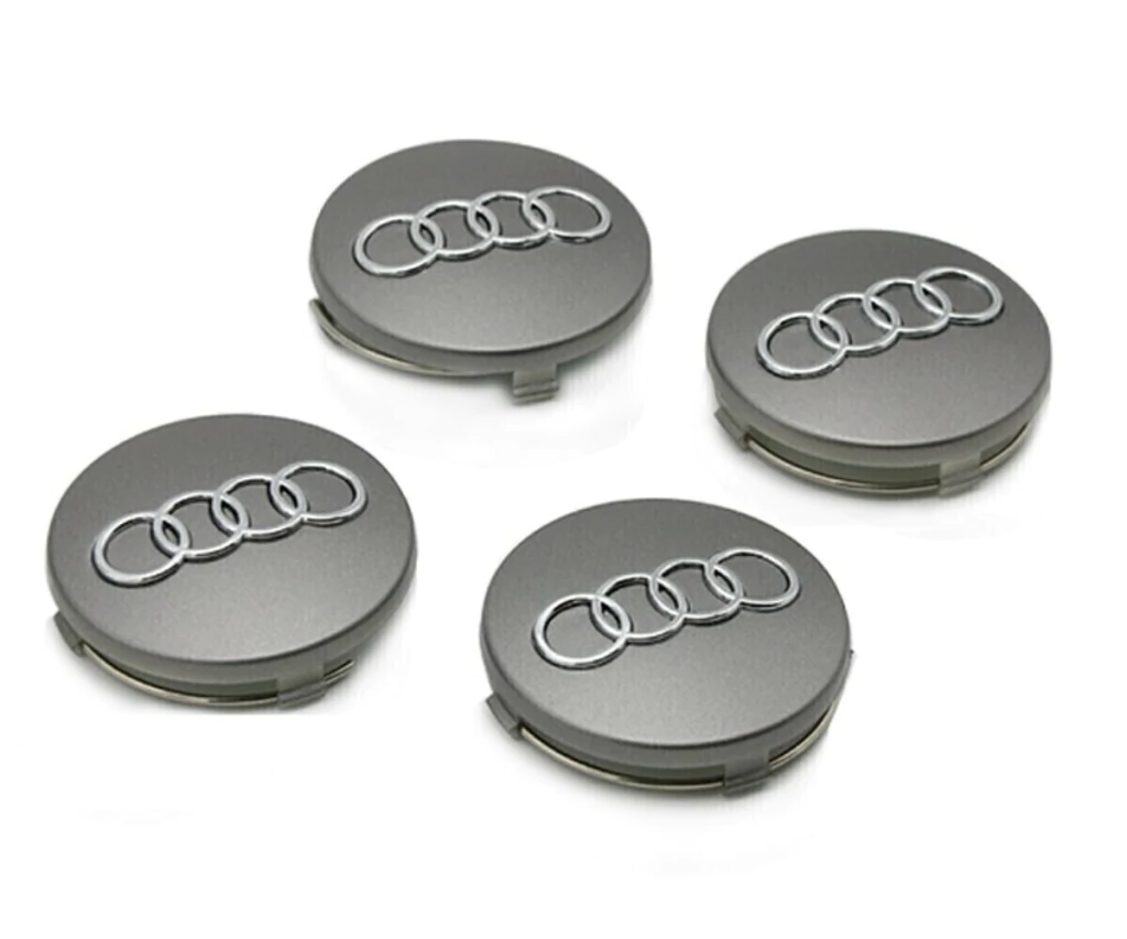 Jogo 04 Calota Miolo Tampa Centro Roda Audi A3 A4 A6 Q3 Q7 60mm Cinza